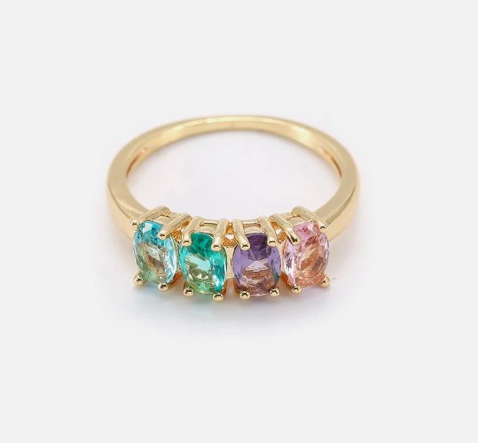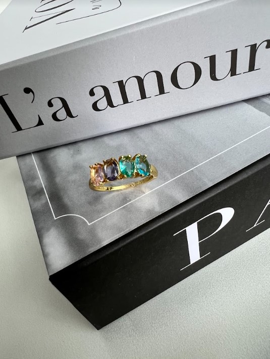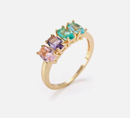ANEL COM ZIRCÔNIAS COLORIDAS | BANHO OURO 18K