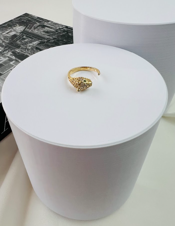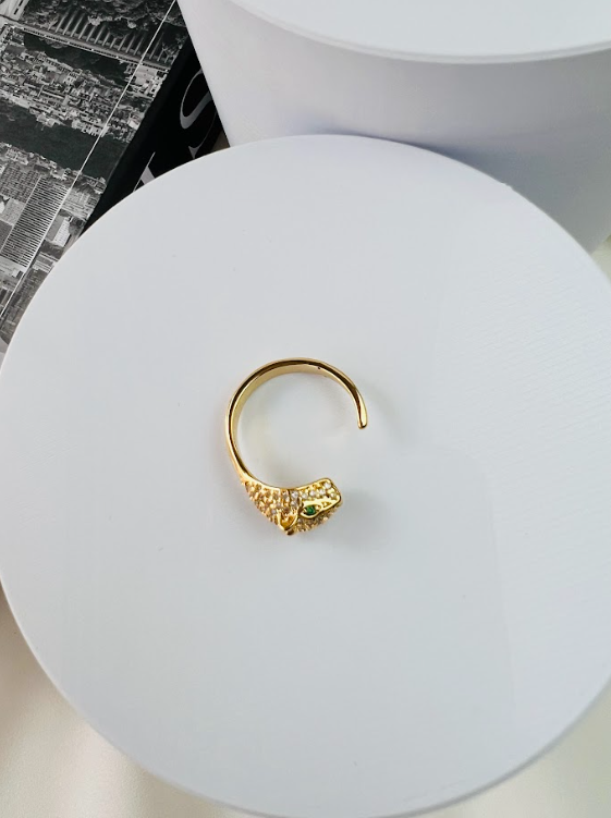 Anel ajustável dourado cravejado em zircônias de cobra, banho de ouro 18K.