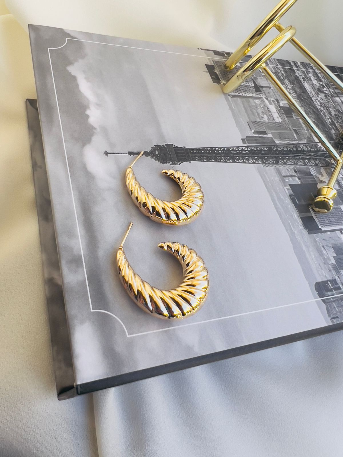 Brinco de argola trabalhada lisa, folheado a Ouro 18K.