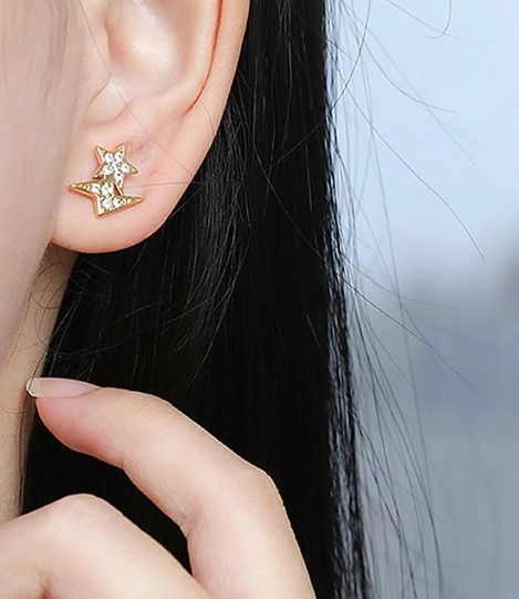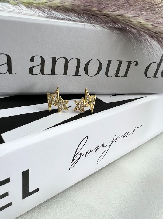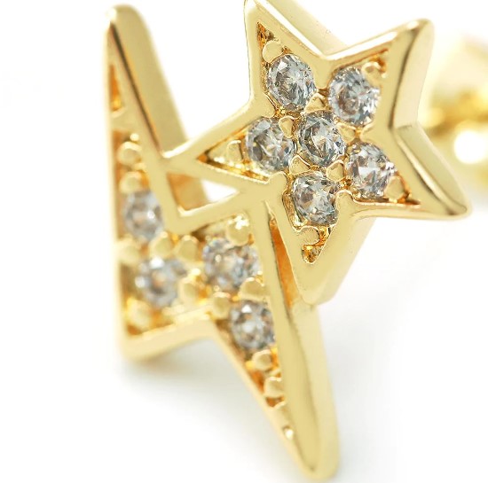 – Brinco com raio e estrela, composto por micro zircônias incolores.