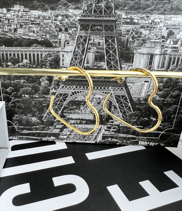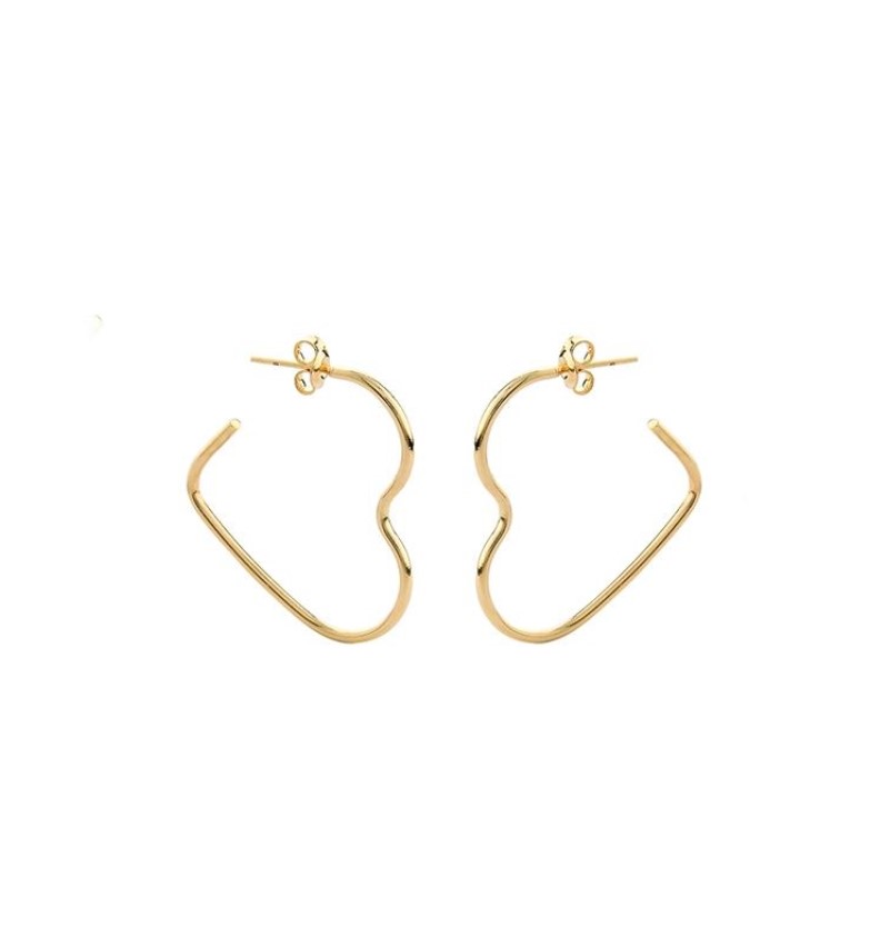 Brinco modelo meia argola fina em formato de coração, com banho de ouro 18K.