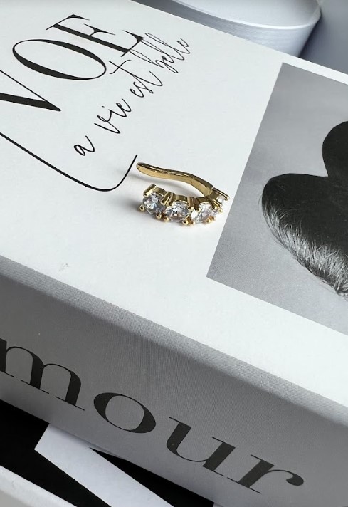 Piercing fake de zircônias incolores, ideal para ser usado no conch, folheado a Ouro 18K.